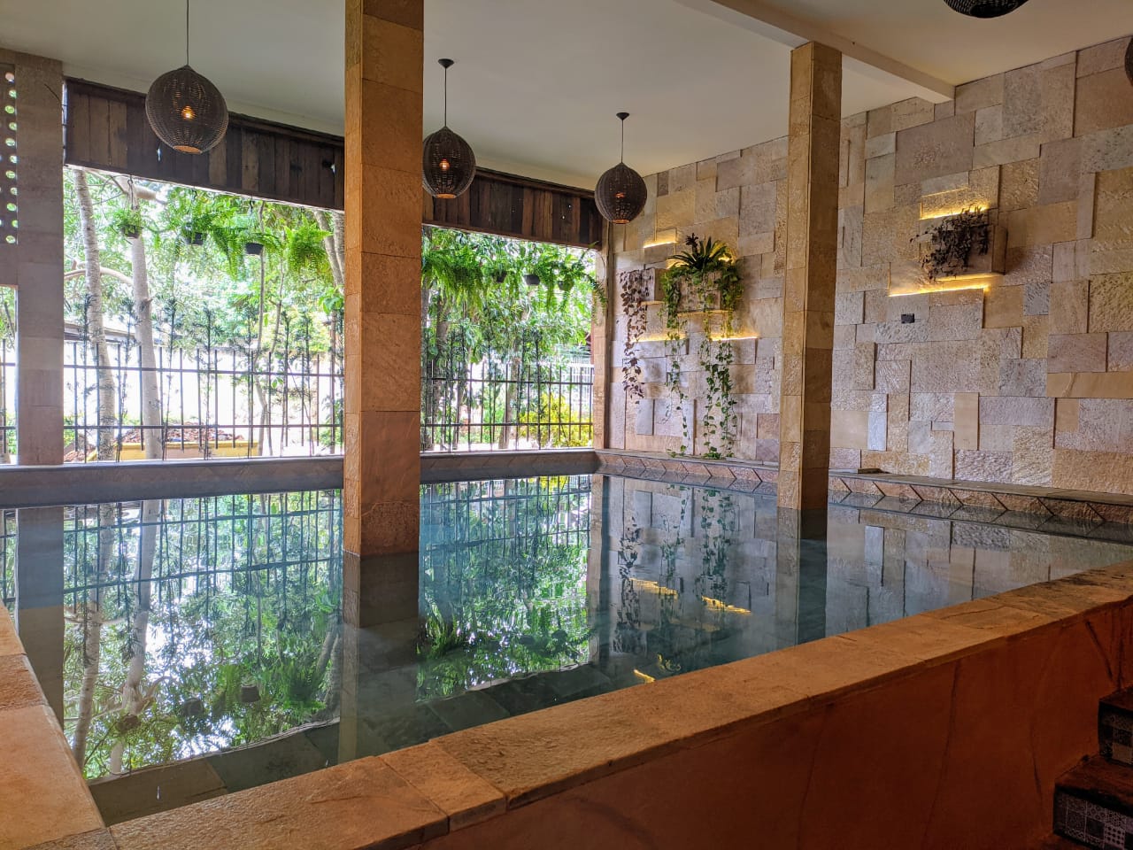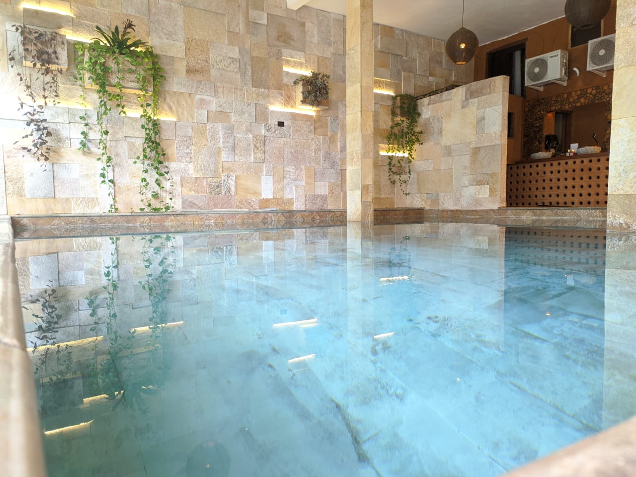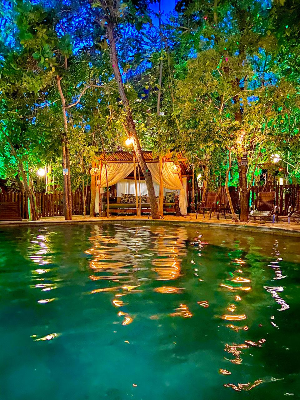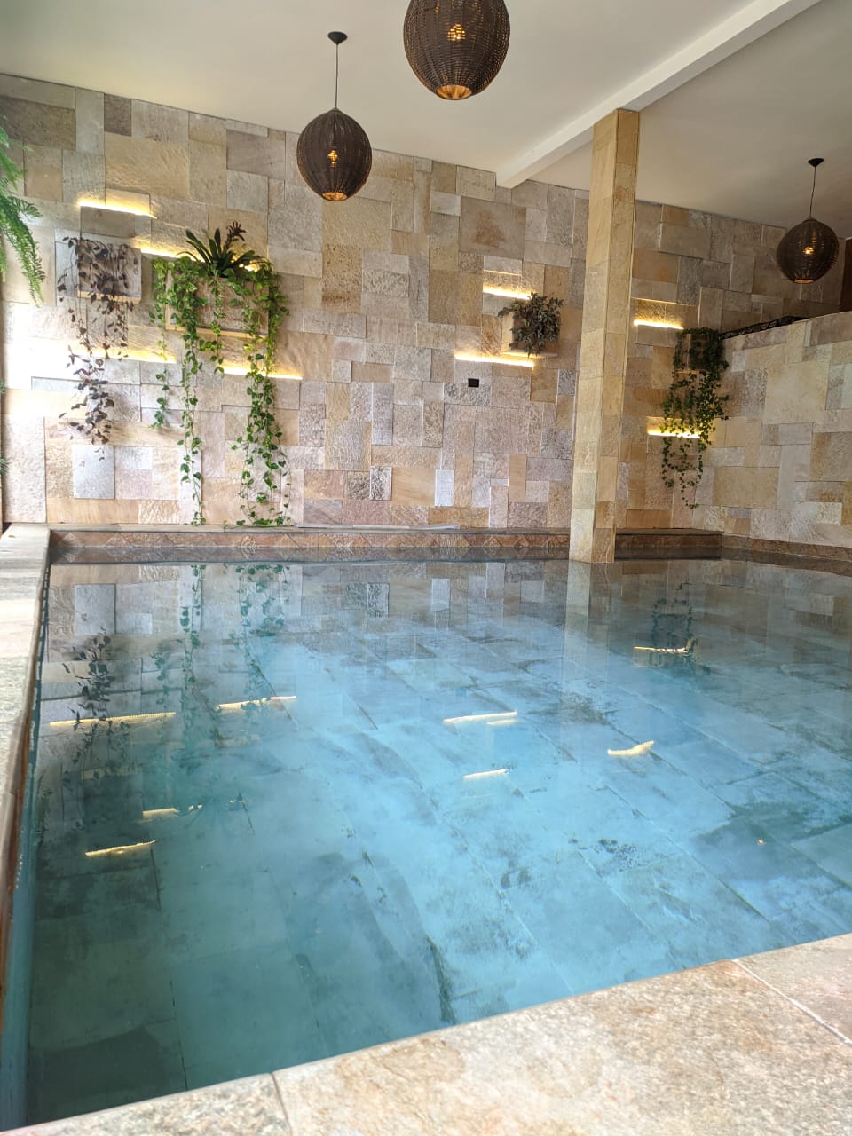 Temos uma estrutura completa, com livings, fontes, Bar, sala de massagem, piscina aberta climatizada e piscina coberta aquecida, estacionamento.